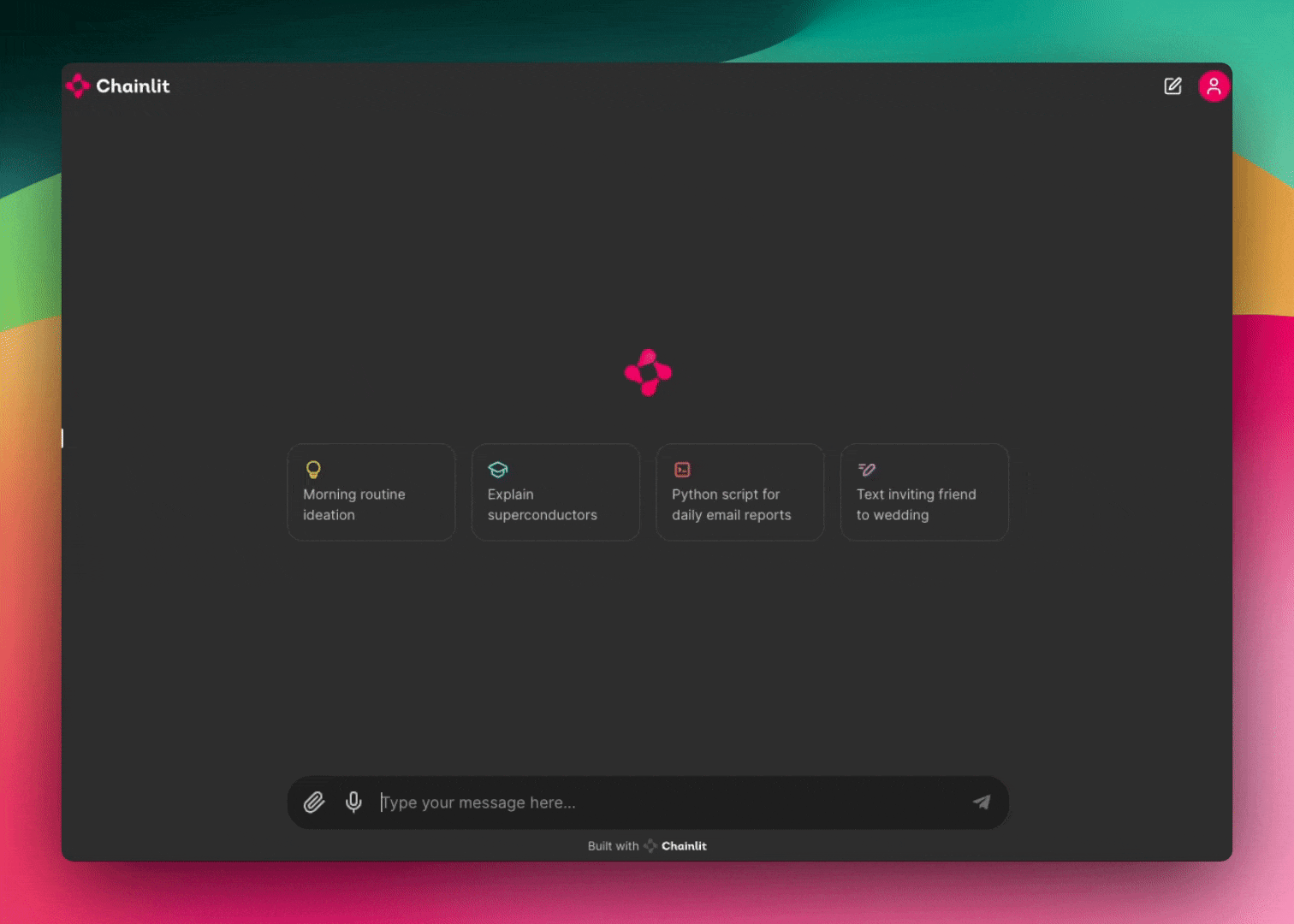 | Message | Streaming | Elements | Audio | Ask User | Chat History | Chat Profiles | Feedback |